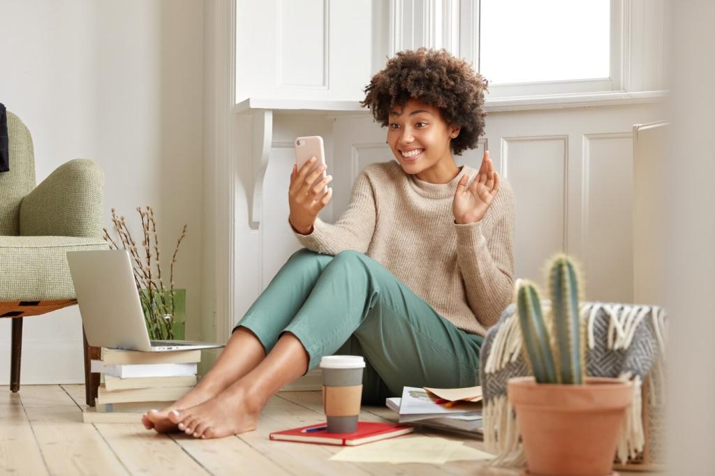 Kork dämpft Schritte und isoliert den Boden, während Wolle textile Wärme schenkt und das Raumklima reguliert. Zusammen reduzieren sie Stressfaktoren wie Lärm und Zugluft spürbar und verwandeln nüchterne Zimmer in behagliche Rückzugsorte, in denen man gerne verweilt.